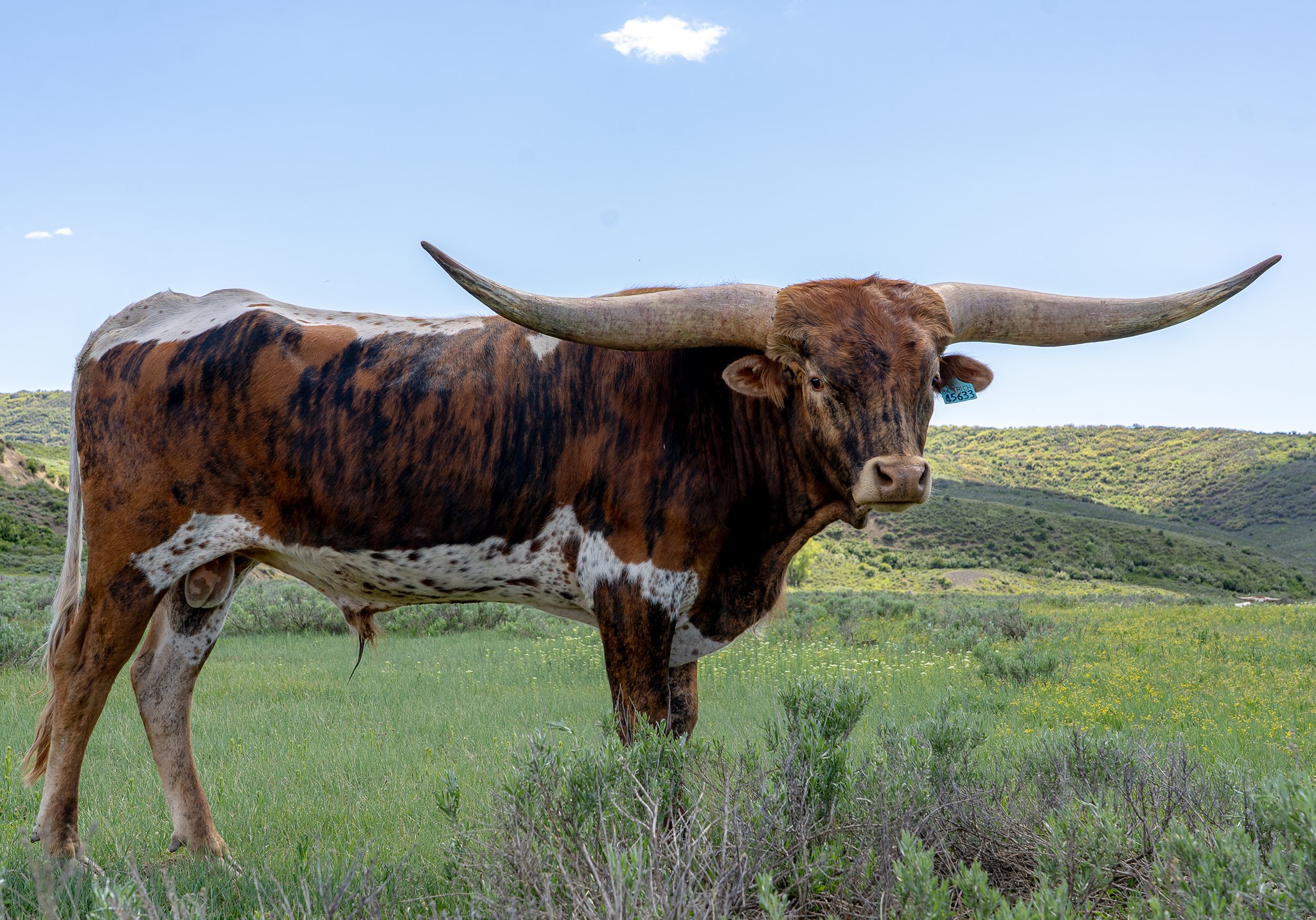 Johnny is an own son of the incredibly HL Heads Up. Not only has Heads Up offspring topped sales and futurities, but now we are seeing what they produce as well. A Heads Up granddaughter just broke the record for highest ever selling yearling. Johnny's maternal granddam is the great HL Pretty Woman. His dam has a beautiful laid back hornset and just rolled over her second twist. She has a beautiful udder attachment and has an amazing dun brindle color. His first few calves are very correct with loud brindle and twisty horn to spare.